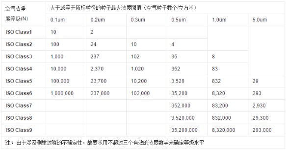 空氣潔凈度等級(air cleanliness class):潔凈空間單位體積空氣中,以大于或等于被考慮粒徑的粒子最大濃度限值進行劃分的等級標準。